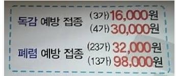 폐렴 예방접종 가격