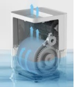 젖은 필터로 공기가 통하게 하여 물을 증발시켜 내보내는 방식인데요. 초음파 물 입자가 세균보다 작아지기 때문에 세균은 남고 물 입자만 공기 중으로 나오게 됩니다.