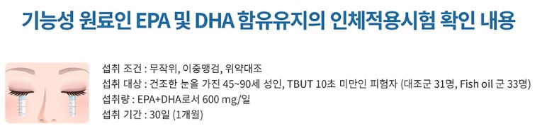 오메가 3는 눈 질환을 예방하는 효능이 있는데요. 눈 신경세포와 망막세포를 구성하는 DHA는 중요한데요. DHA가 눈물 막을 튼튼하게 만들어 EPA가 눈에 염증성 물질을 줄일 수 있어 안구건조증 황반변성 등 눈 질환을 예방합니다.
